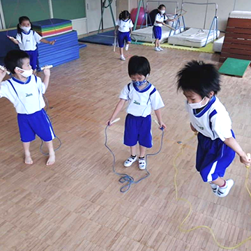 年少の正課活動は、毎週金曜日スイミングがあり年中・年長となっても続けて行えるよう連携をとらせてもらっています。