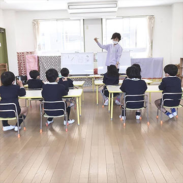 教室では、ひらがなの読み書きや、言葉や文の理解、たし算やひき算の基礎となる数のとらえ方など、ご家庭では教えにくい分野を、系統立てて学び、小学校での学習で躓かない基礎学力と、「勉強が好き」という気持ち、学習習慣を育みます。